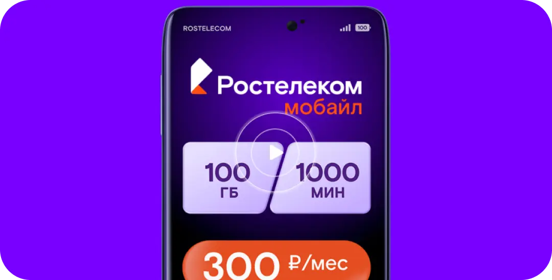 • Тариф предназначен для гаджетов с поддержкой SIM-карт: планшетов и смартфонов. Оператор мобильной связи Ростелеком обеспечивает максимальную скорость интернет-соединения с учетом технических возможностей. Если используется иная сеть, параметры доступа определяются ее характеристиками. При исчерпании лимита трафика в объеме 100 Гб скорость снижается до 128 Кбит/с. Она восстанавливается в следующем периоде в случае своевременной оплаты.